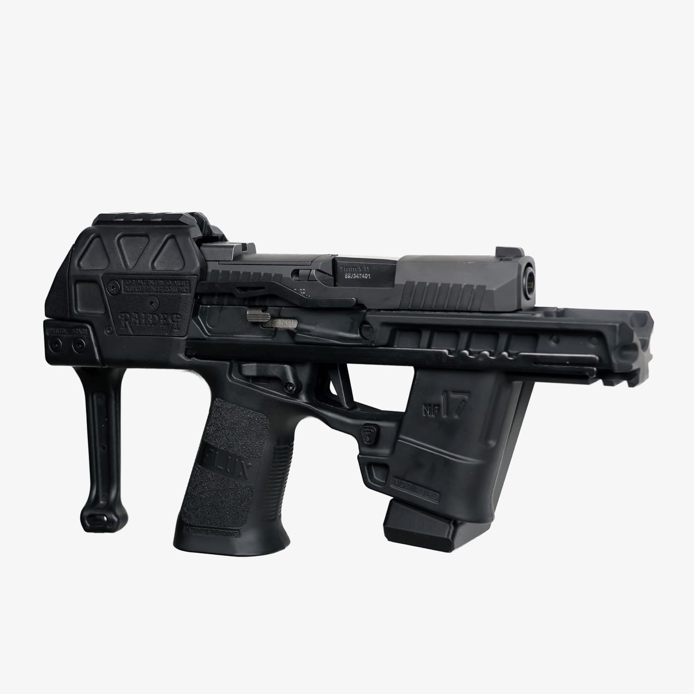 Uchwyt umożliwia przechowywanie pistoletu w pozycji równoległej do ściany szafy pancernej. Wyposażony jest w silne magnesy neodymowe. Jego konstrukcja zapewnia stabilne przechowywanie pistoletu oraz efektowne wyeksponowanie broni. Uchwyt występuje w sześciu wariantach akcentu kolorystycznego.